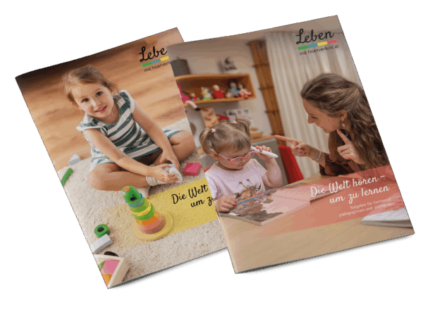 „Die Welt hören – um zu lernen“ ist ein zweiteiliger Ratgeber für Eltern von Kindern mit Hörimplantaten sowie für deren Elementarpädagoginnen und -pädagogen. Er unterstützt dabei, hörbeeinträchtigte Kinder auf ihrem ersten Bildungsweg besser zu verstehen, ihre individuellen Bedürfnisse wahrzunehmen und sie gezielt zu fördern, damit sie bestmöglich vorbereitet und gestärkt in die Schule starten können.